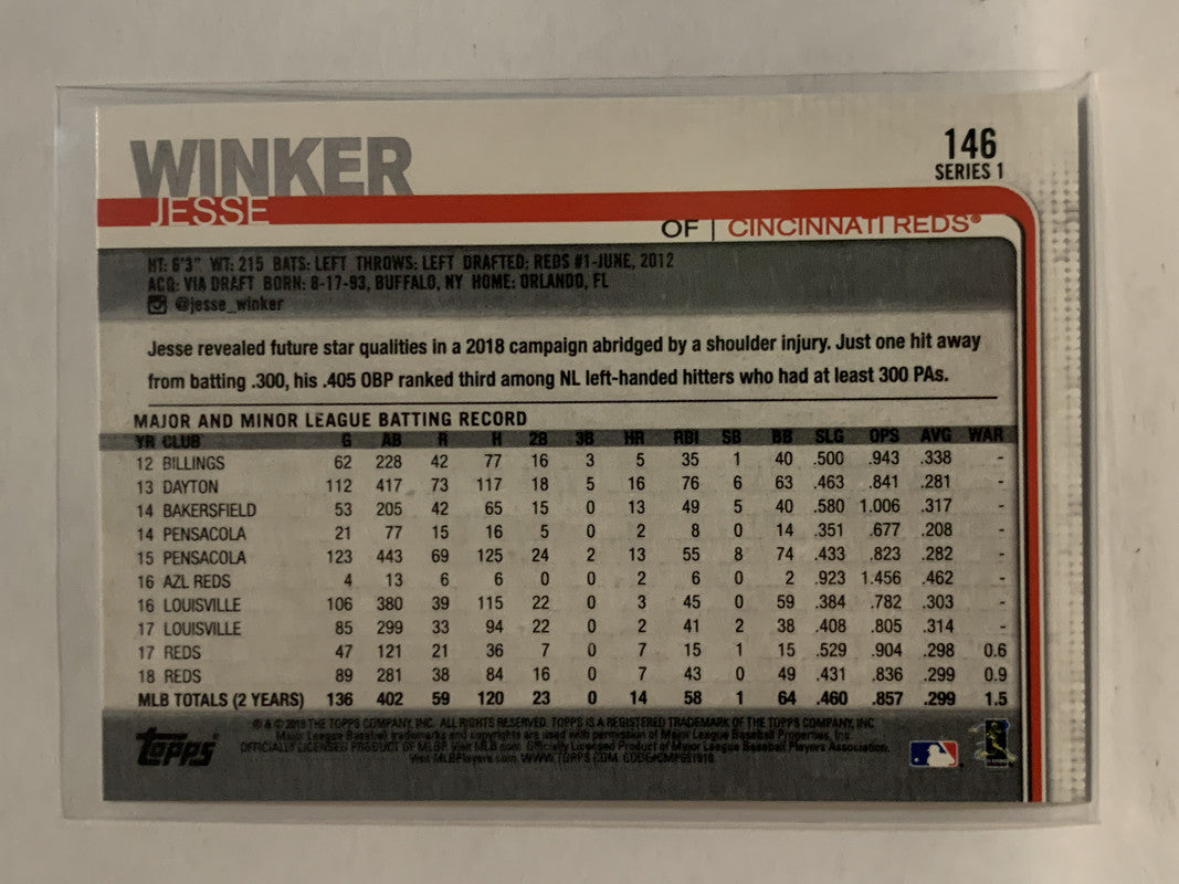 #146 Jesse Winker Cincinnati Reds 2019 Topps Series One Baseball Card