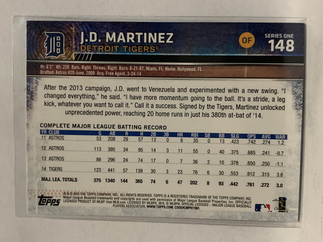 #148 J.D. Martinez Detroit Tigers 2015 Topps Series One Baseball Card