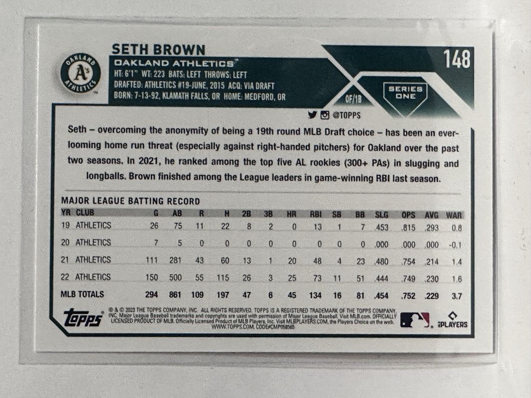 #148 Seth Brown Oakland Athletics 2023 Topps Series One Baseball Card