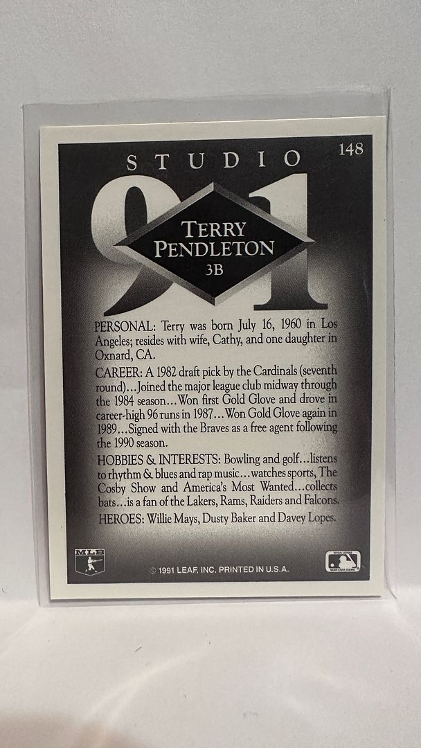 #148 Terry Pendleton Atlanta Braves 1991 Studio Baseball Card