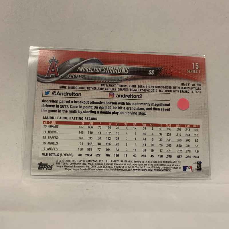 #15 Andrelton Simmons Los Angeles Angels Series 1 2018 Topps Baseball Card A1K