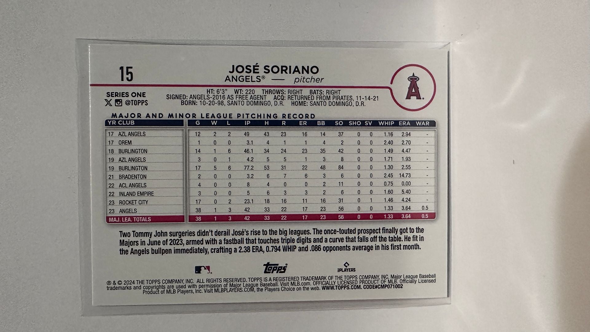 #15 Jose Soriano Rookie Los Angeles Angels 2024 Topps Baseball Card