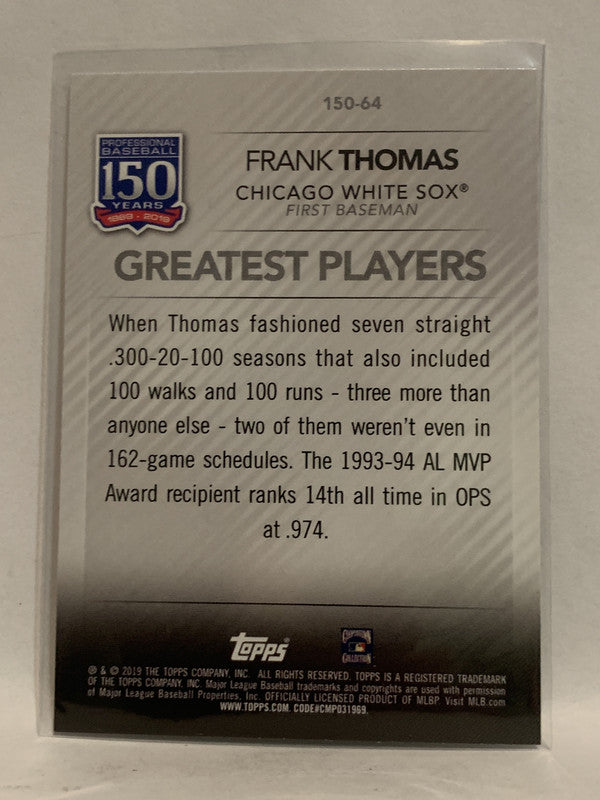 #150-64 Frank Thomas Chicago White Sox 2019 Topps Series One Baseball Card