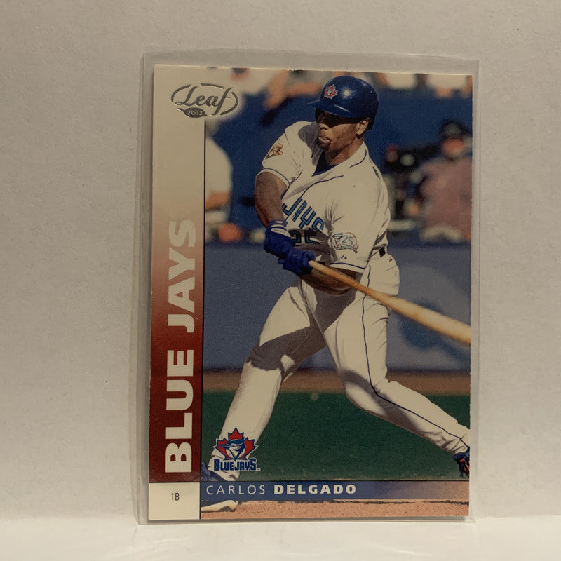 #150 Carlos Delgado Toronto Blue Jays 2002 Donruss Leaf Baseball Card IX