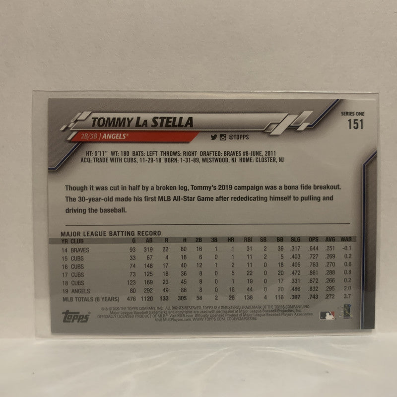 #151 Tommy La Stella Los Angeles Angels 2020 Topps Series One Baseball Card JC