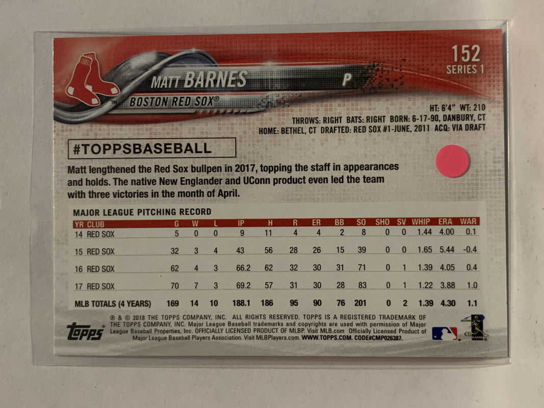 #152 Matt Barnes Boston Red Sox 2018 Topps Series One Baseball Card