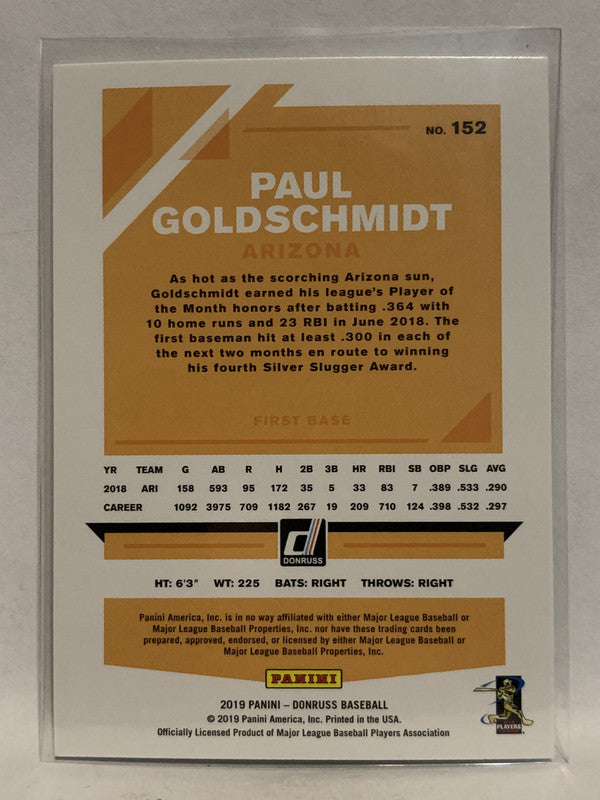 #152 Paul Goldschmidt Arizona Diamondbacks 2019 Donruss Baseball Card