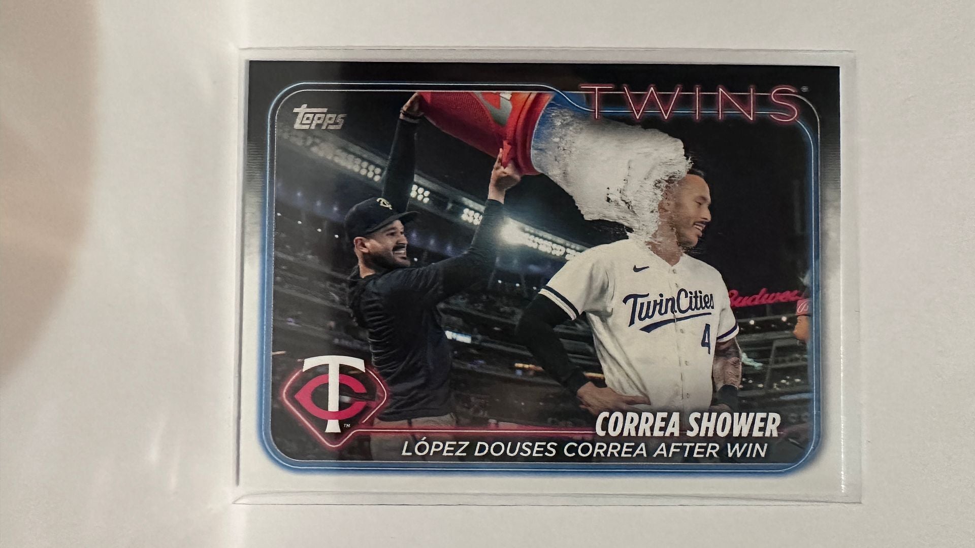 #155 Correa Shower Checklist Minnesota Twins 2024 Topps Baseball Card
