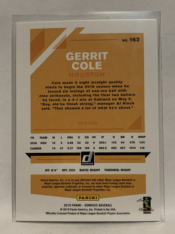 #162 Gerrit Cole Houston Astros 2019 Donruss Baseball Card
