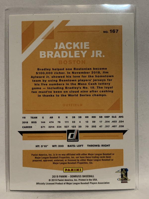 #167 Jackie Bradley Jr Boston Red Sox 2019 Donruss Baseball Card