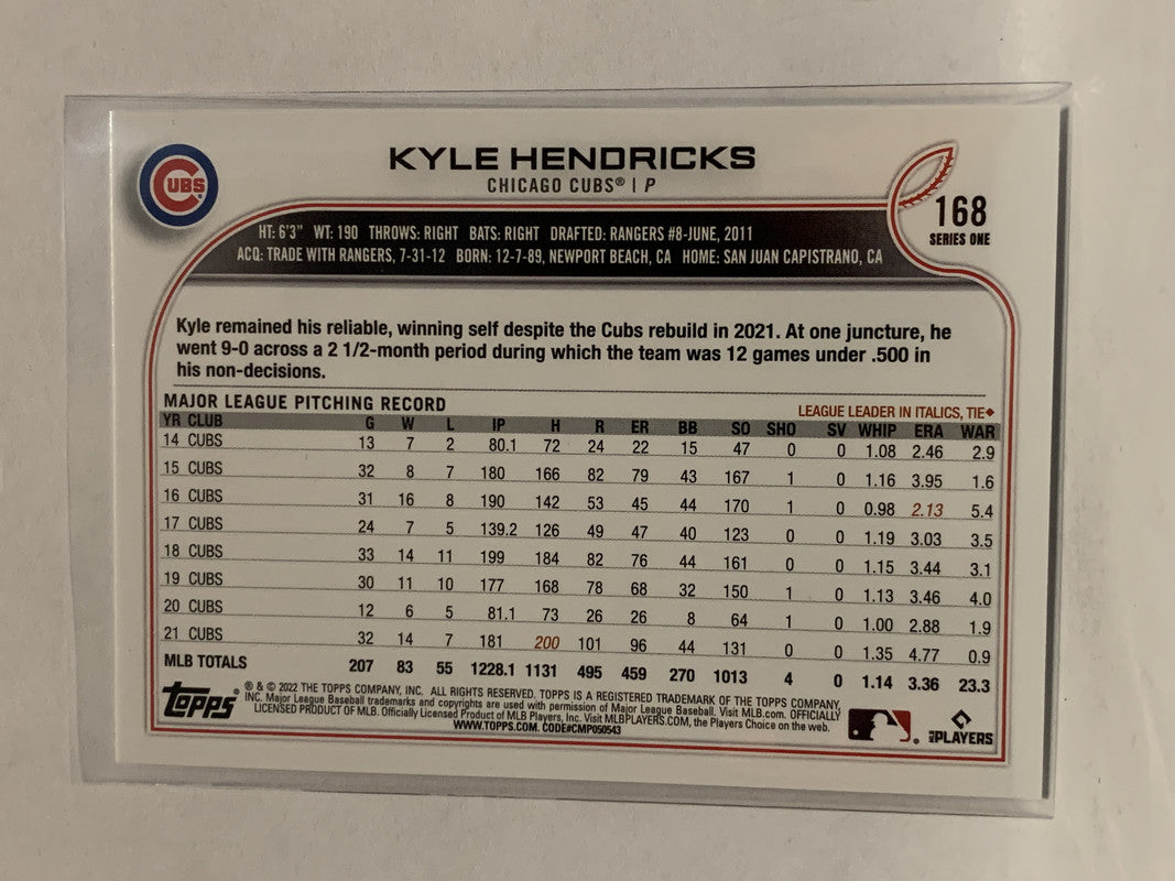#168 Kyle Hendricks Chicago Cubs 2022 Topps Series One Baseball Card MLB