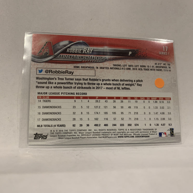 #17 Robbie Ray Arizona Diamondbacks Series 1 2018 Topps Baseball Card A1K