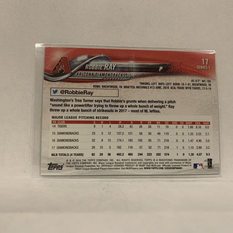 #17 Robbie Ray Arizona Diamondbacks Series 1 2018 Topps Baseball Card A1T