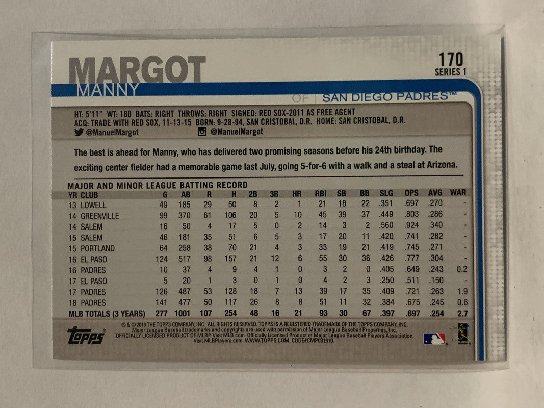 #170 Manny Margot San Diego Padres 2019 Topps Series One Baseball Card