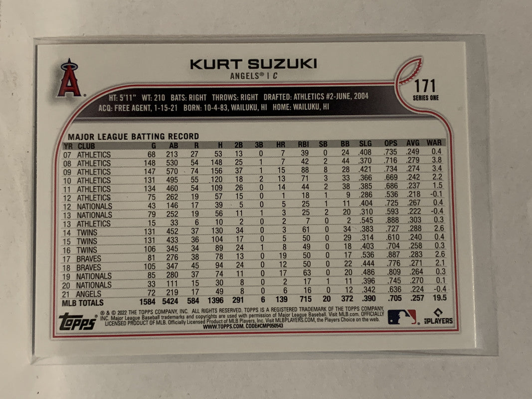 # 171 Kurt Suzuki Los Angeles Angels 2022 Topps Series 1 Baseball Card