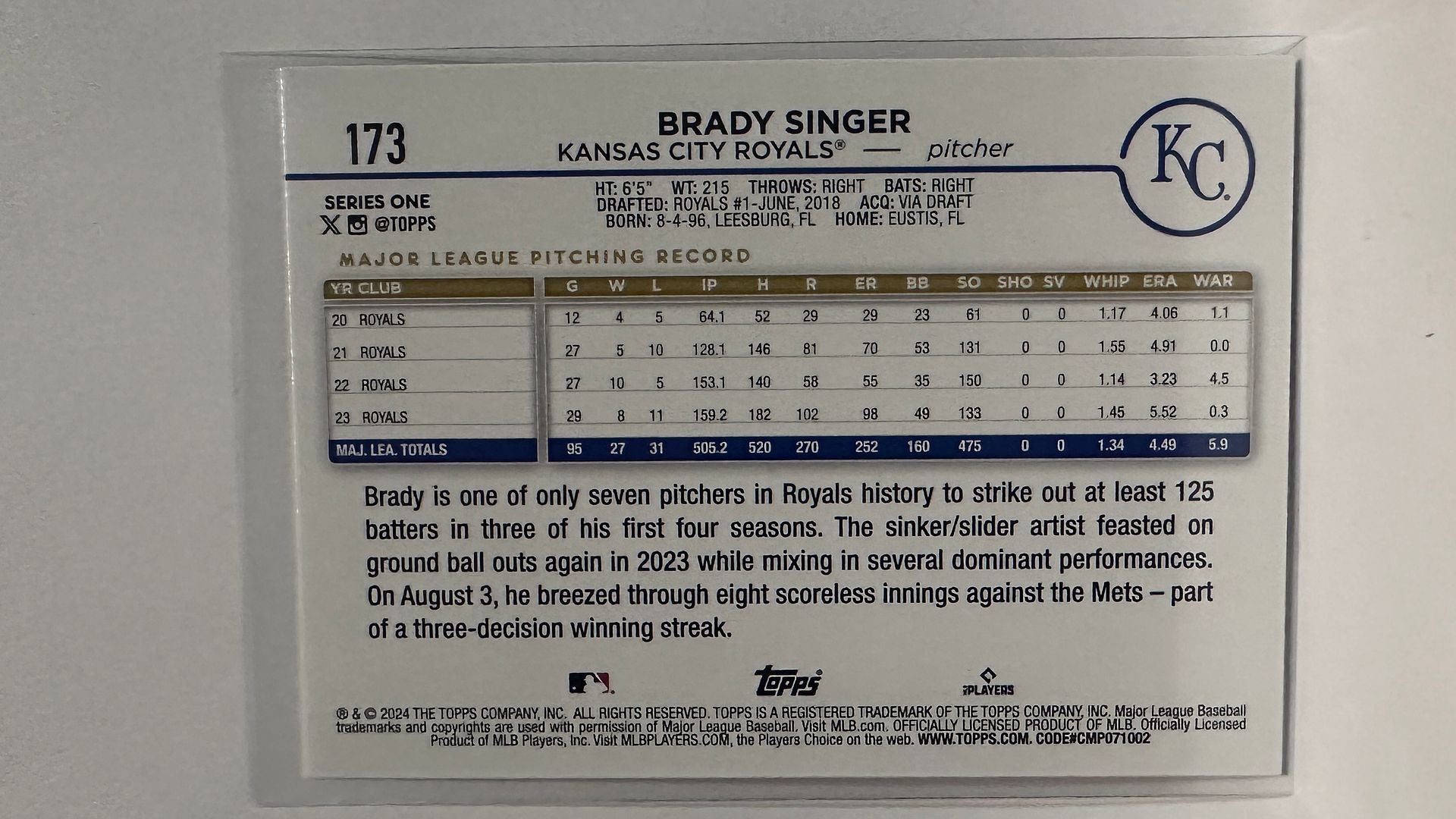 #173 Brady Singer Kansas City Royals 2024 Topps Baseball Card