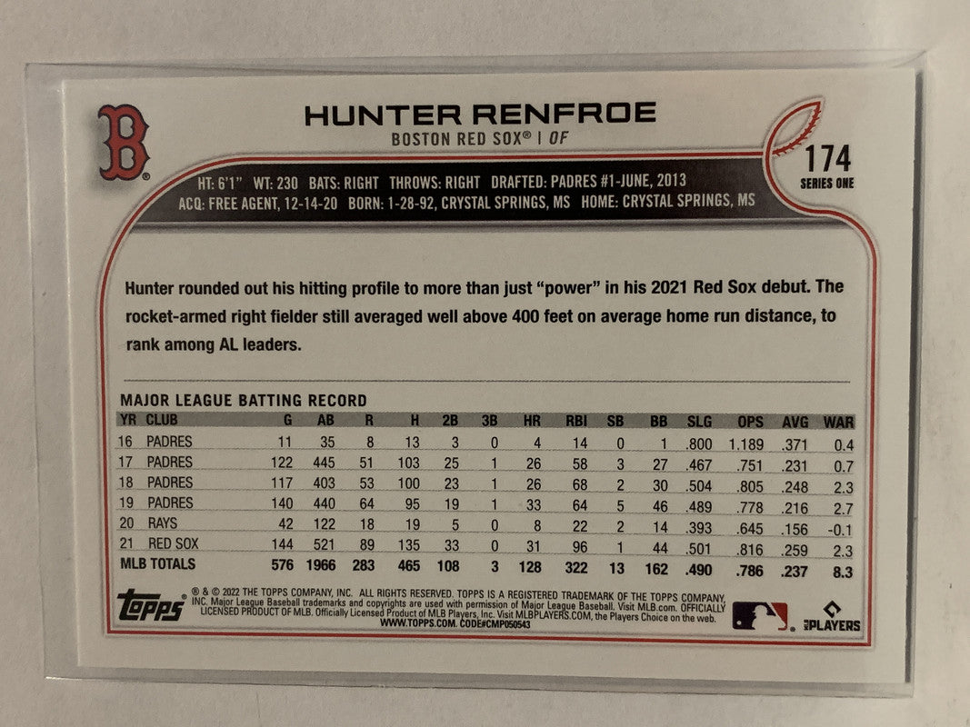 #174 Hunter Renfroe Boston Red Sox 2022 Topps Series One Baseball Card MLB