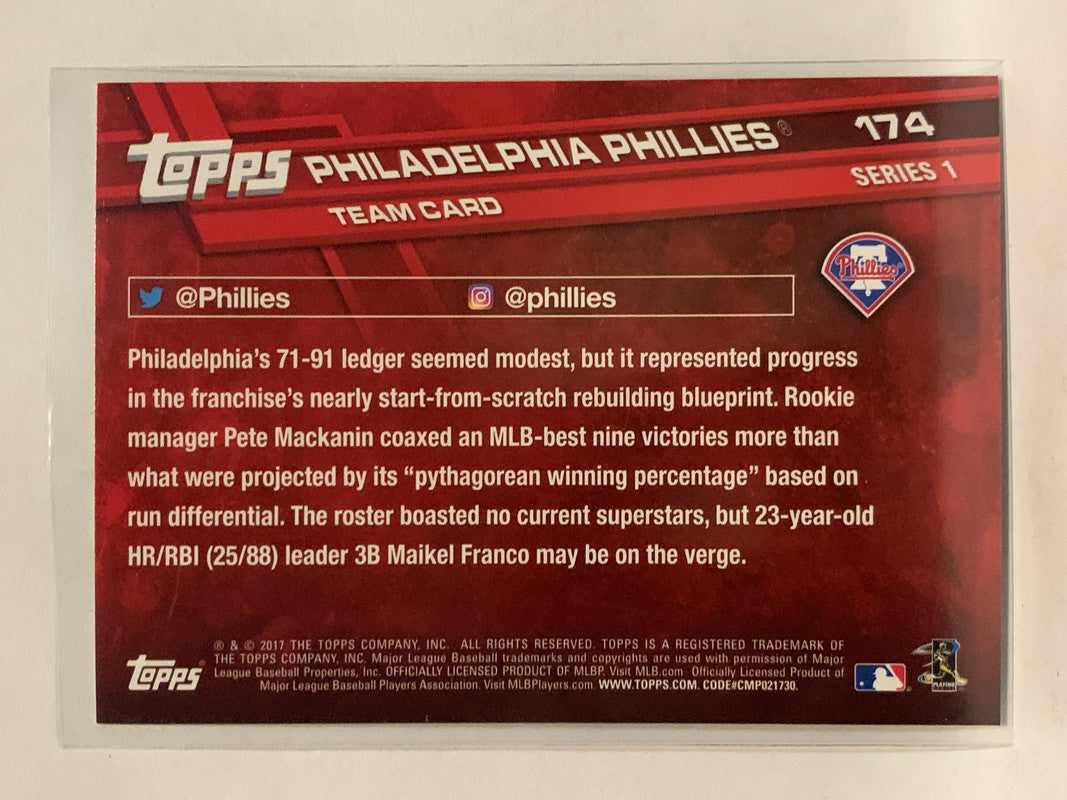 #174 Team Card Philadelphia Phillies 2017 Topps Series One Baseball Card
