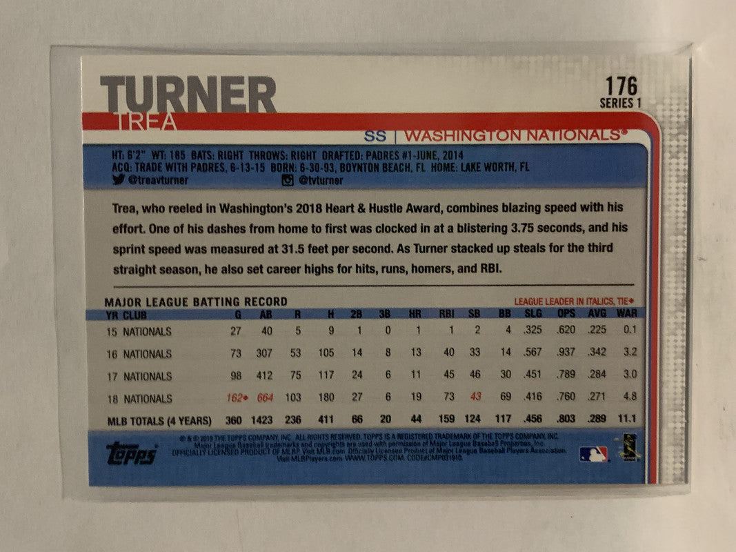 #176 Trea Turner Washington Nationals 2019 Topps Series One Baseball Card