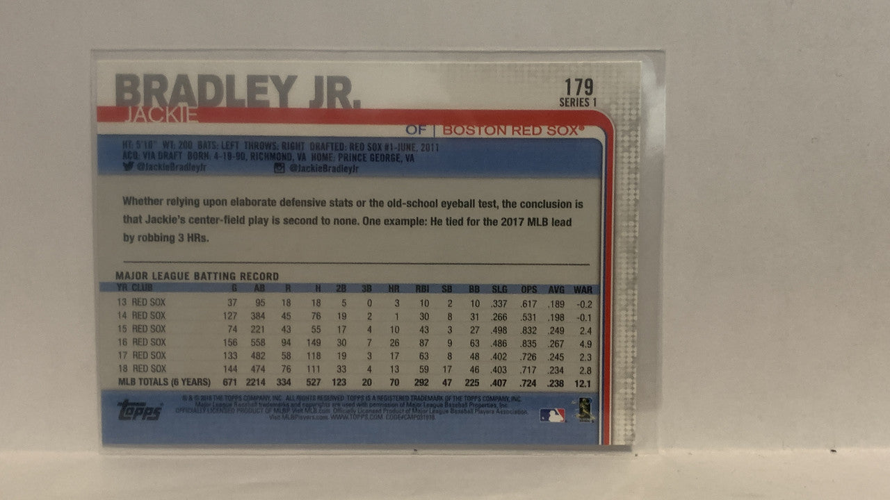 #179 Jackie Bradley Jr Boston Red Sox 2019 Topps Series 1 Baseball Card
