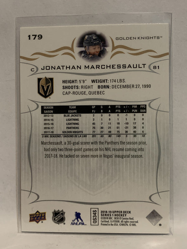 #179 Jonathan Marchessault Las Vegas Golden Knights 2018-19 Upper Deck Series One Baseball Card