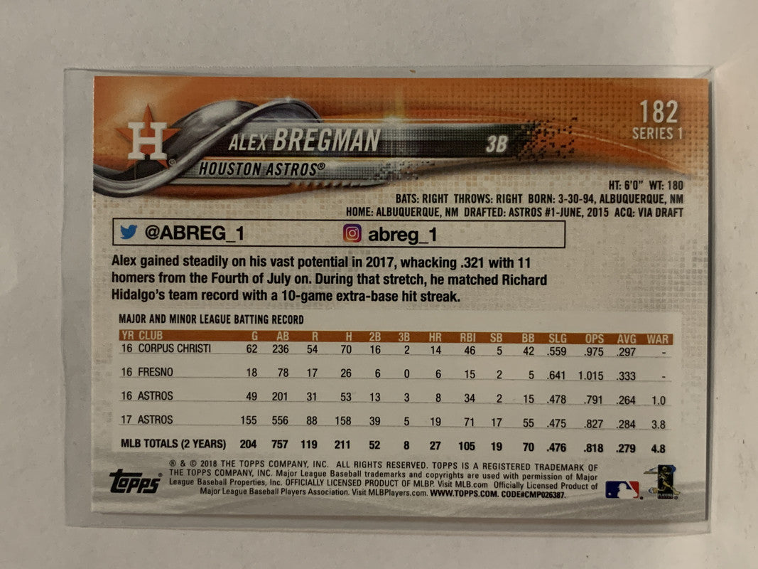 #182 Alex Bregman Future Stars Houston Astros 2018 Topps Series One Baseball Card