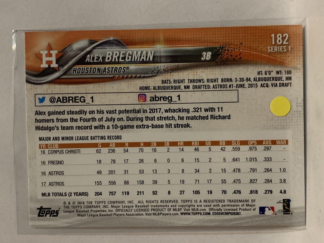 #182 Alex Bregman Future Stars Houston Astros 2018 Topps Series One Baseball Card