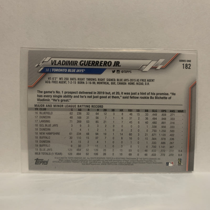 #182 Vladimir Guerrereo Jr. Toronto Blue Jays All Star Rookie 2020 Topps Series One Baseball Card JD