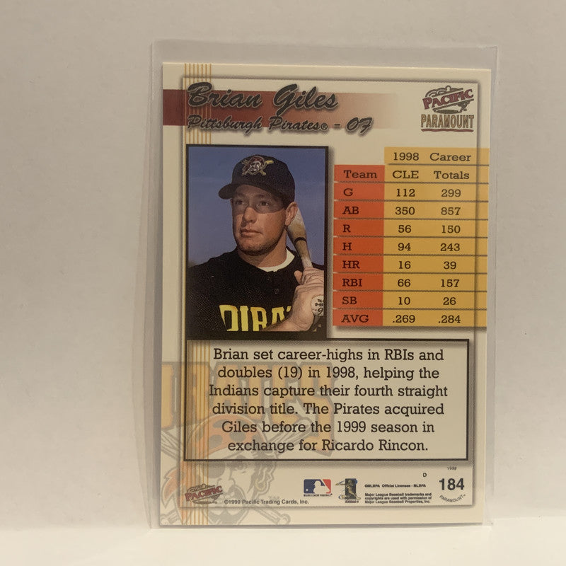 #184 Brian Giles Pittsburgh Pirates 1999 Pacific Paramount Baseball Card HX