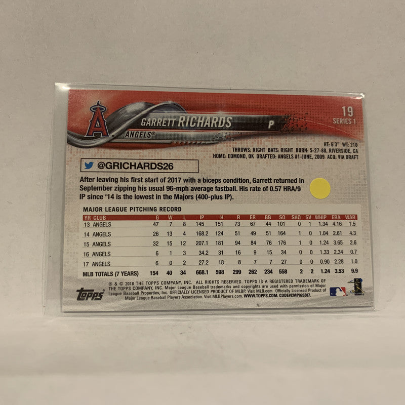 #19 Garrett Richards Los Angeles Angels Series 1 2018 Topps Baseball Card A1T