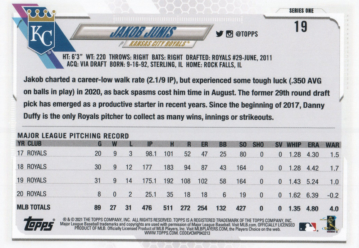 #19 Jakob Junis Kansas City Royals 2021 Topps Series 1 Baseball Card
