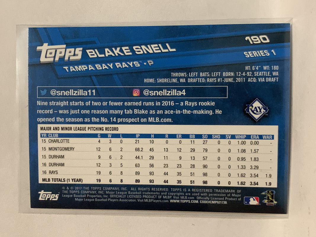 #190 Blake Snell Tampa Bay Rays 2017 Topps Series One Baseball Card