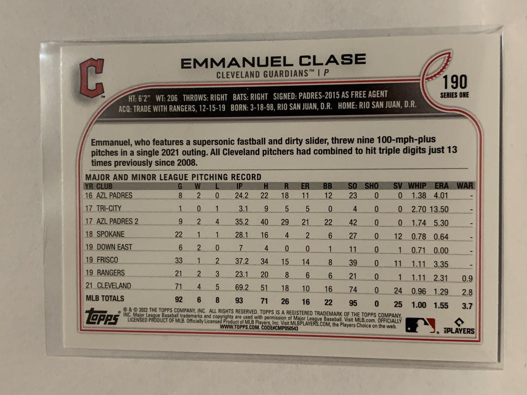 #190 Emmanuel Close All Star Rookie Cleveland Guardians 2022 Topps Series 1 Baseball Card MLB