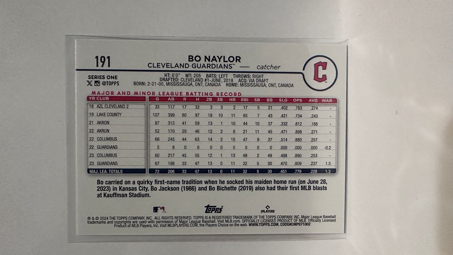 #191 Bo Naylor Cleveland Guardians 2024 Topps Baseball Card
