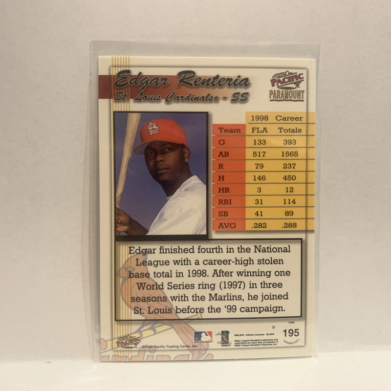 #195 Edgar Renteria St Louis Cardinals 1999 Pacific Paramount Baseball Card HG