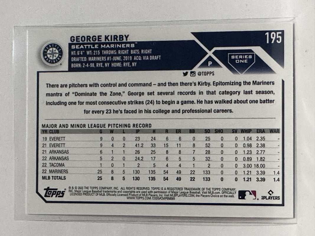 #195 George Kirby Future Stars Seattle Mariners 2023 Topps Series One Baseball Card