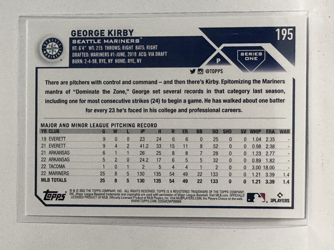 #195 George Kirby Future Stars Seattle Mariners 2023 Topps Series One Baseball Card