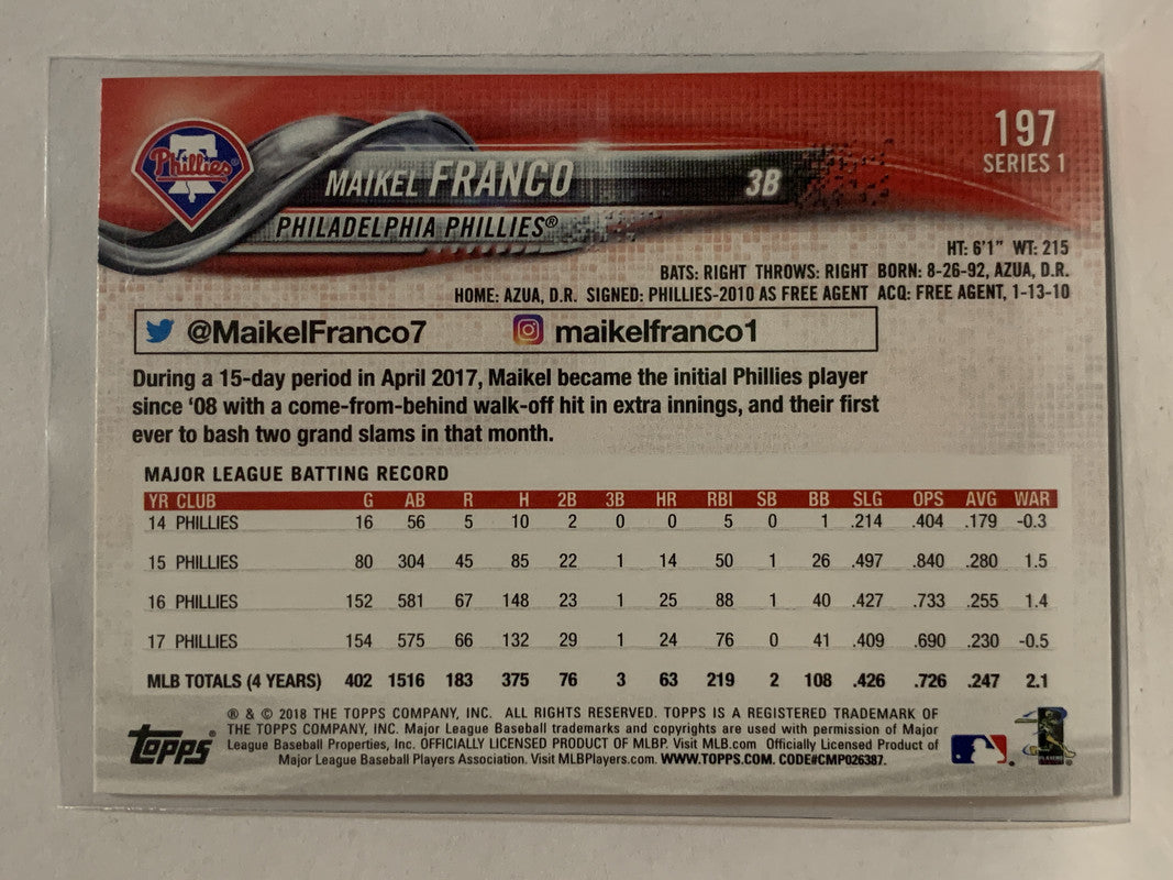 #197 Maikel Franco Philadelphia Phillies 2018 Topps Series One Baseball Card