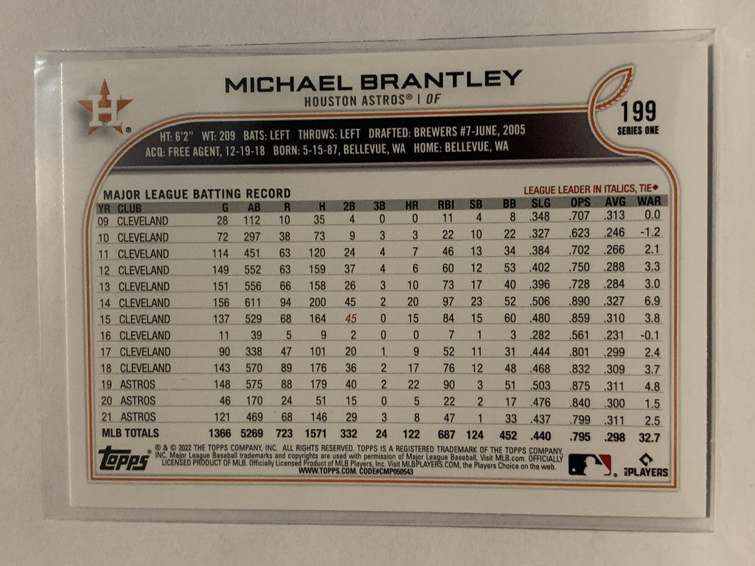 #199 Michael Brantley Houston Astros 2022 Topps Series 1 Baseball Card MLB