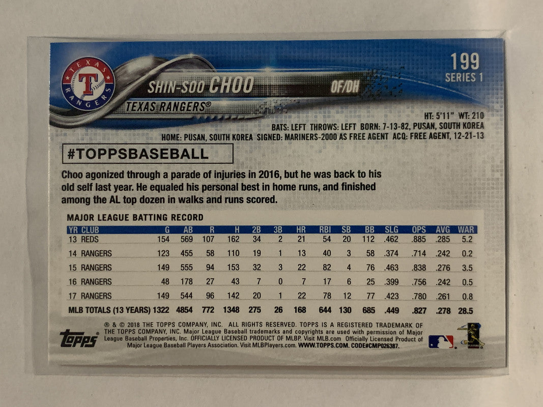 #199 Shin-Soo Choo Texas Rangers 2018 Topps Series One Baseball Card