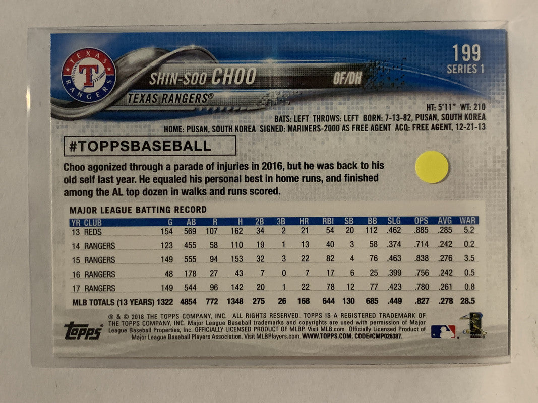 #199 Shin-Soo Choo Texas Rangers 2018 Topps Series One Baseball Card