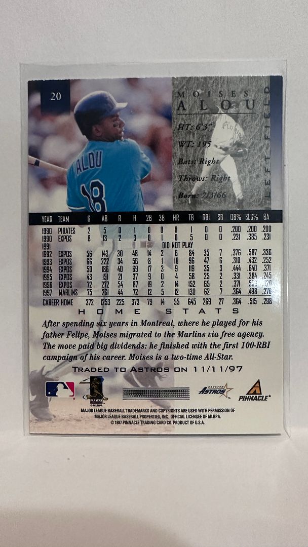 #20 Moises Alou Florida Marlins 1997 Pinnacle Baseball Card