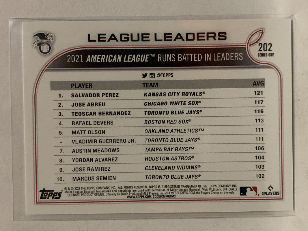 #202 Perez Abreu Hernandez Runs Batted in Leaders 2022 Topps Series One Baseball Card MLB