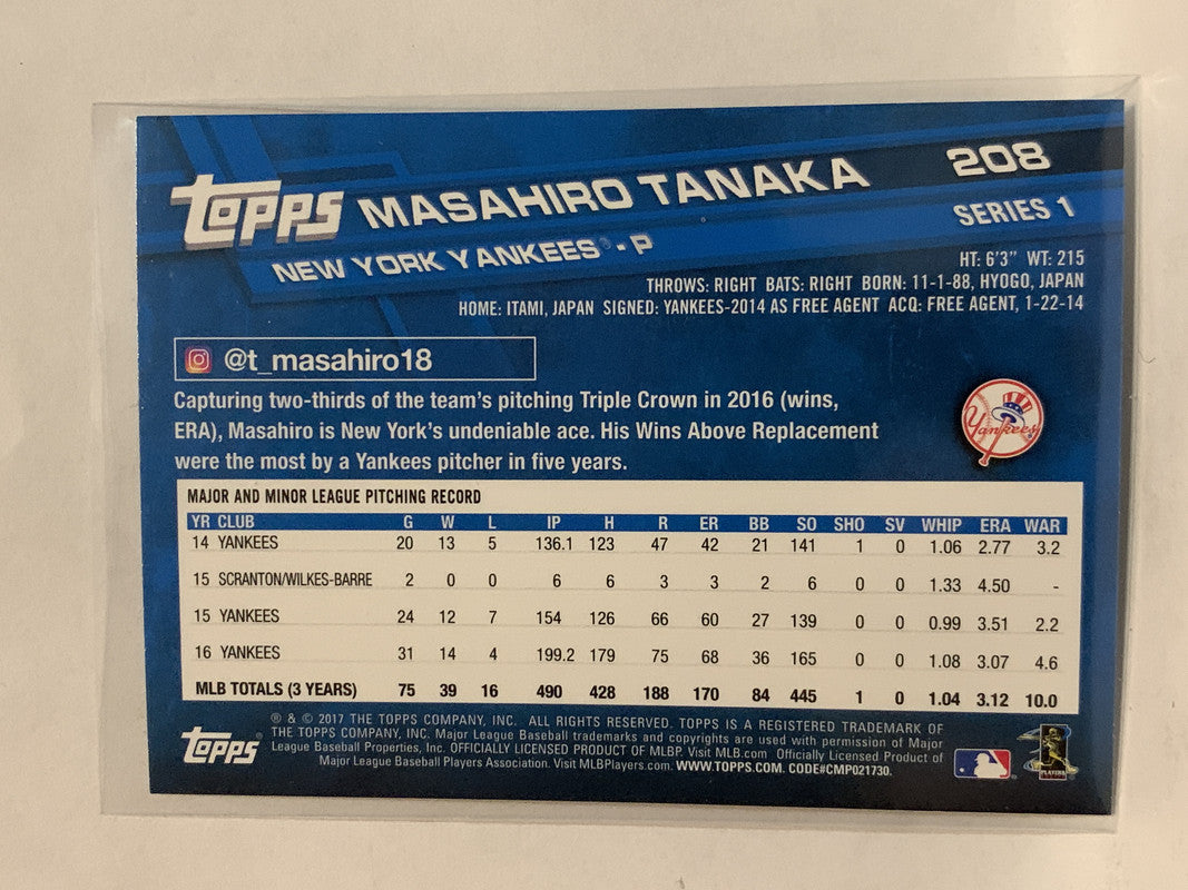 #208 Masahiro Tanaka New York Yankees 2017 Topps Series One Baseball Card