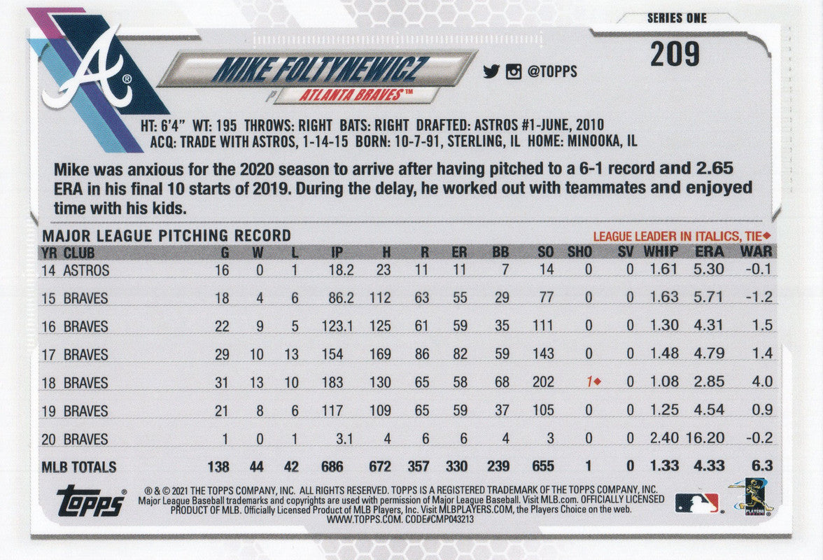 #209 Mike Foltynewicz Atlanta Braves 2021 Topps Series 1 Baseball Card