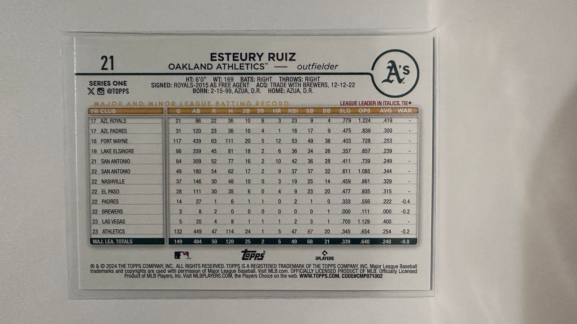 #21 Esteury Ruiz Oakland Athletics 2024 Topps Baseball Card