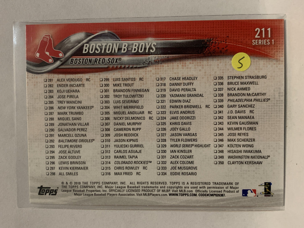 #211 Boston B-Boys Boston Red Sox 2018 Topps Series One Baseball Card MLB