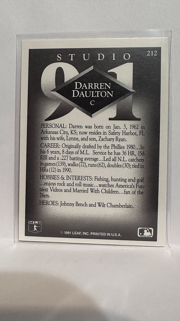 #212 Darren Daulton Philadelphia Phillies 1991 Studio Baseball Card