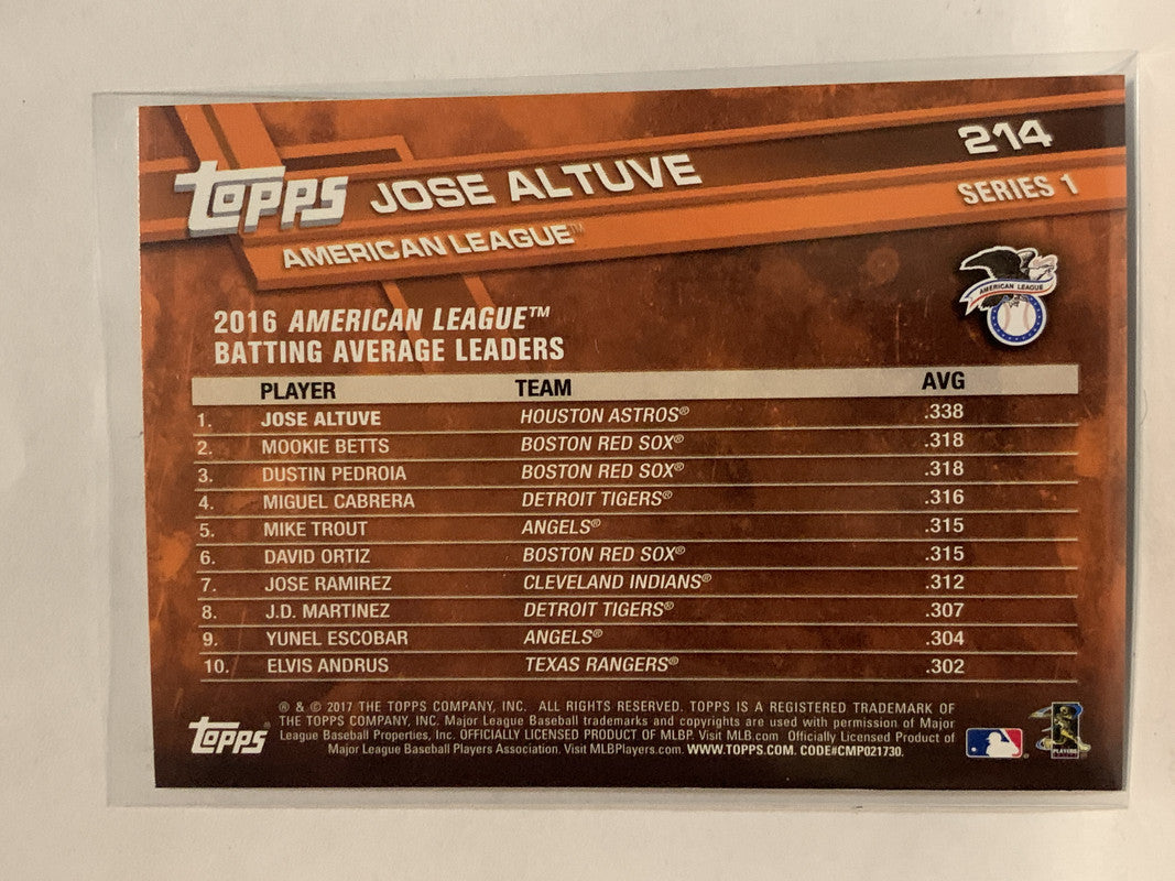 #214 Jose Altuve League Leaders Houston Astros 2017 Topps Series One Baseball Card