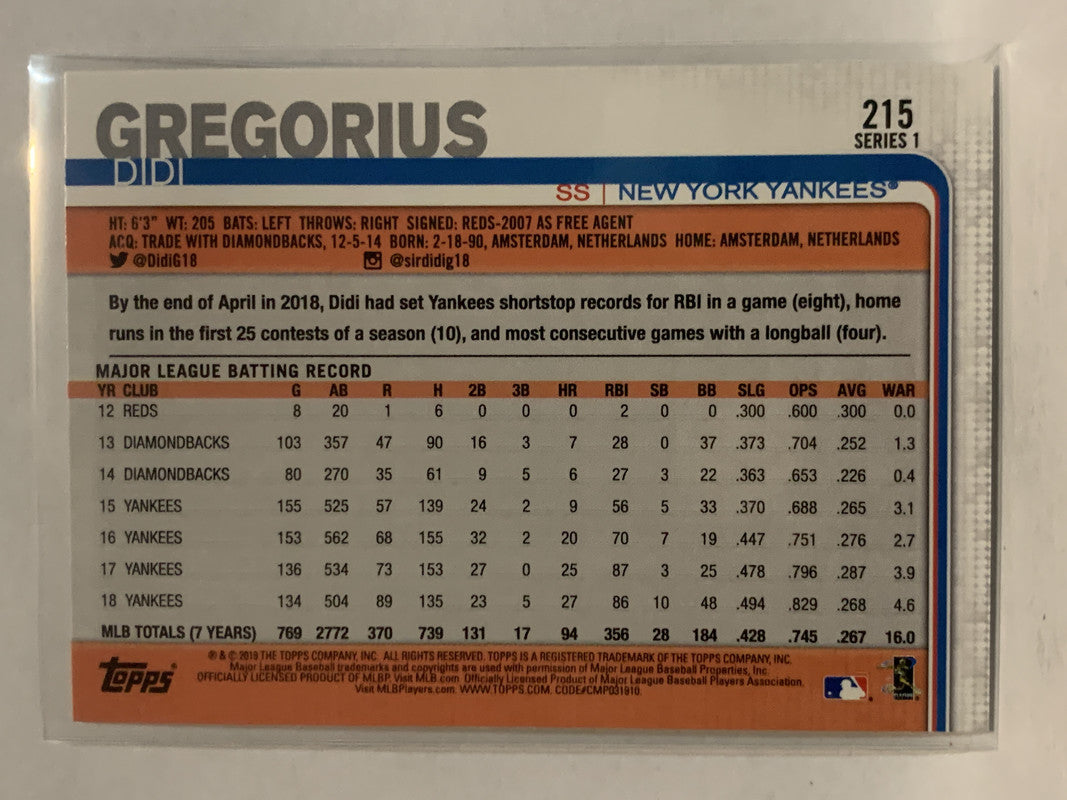#215 Didi Gregorius New York Yankees 2019 Topps Series One Baseball Card